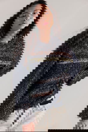 Wool-Cashmere Stripe Collared Jumper In Chocolate/Cream