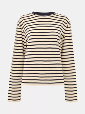 Stripe Long Sleeve Jersey Top, Ivory/Multi