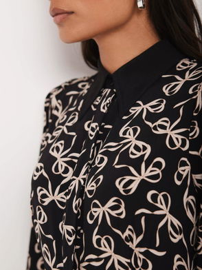Bow Print Shirt Midi Dress, Black/Multi