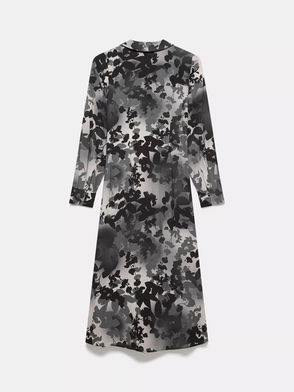 Floral Collared Midi Dress, Black/Multi