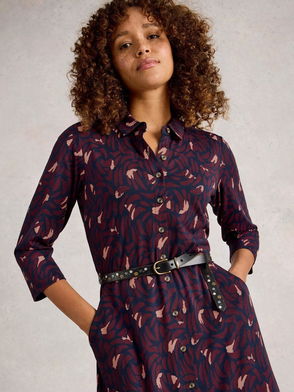 Marcia Geometric Jersey Shirt Dress, Navy/Multi