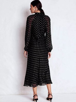 Vivienne Wool Blend Check Long Sleeve Midi Shirt Dress