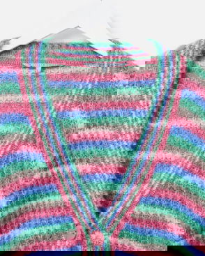 Multicoloured Striped V-Neck Fluffy Knitted Cardigan