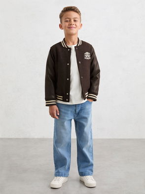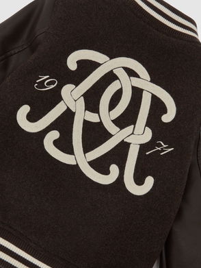 9-13 Yrs Monogram Relaxed Varsity Jacket Unisex Fit In Brown/Off White