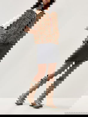 Josie Open Collar Boxy Jacket, Navy/Multi