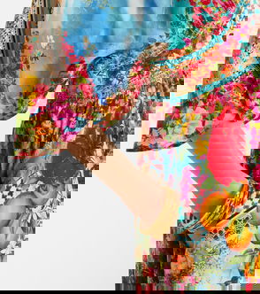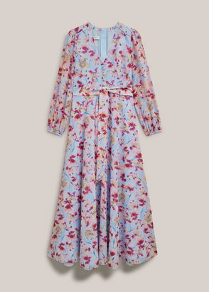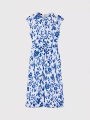 Blurred Floral Ruched Midi Dress, Blue/Multi