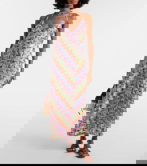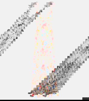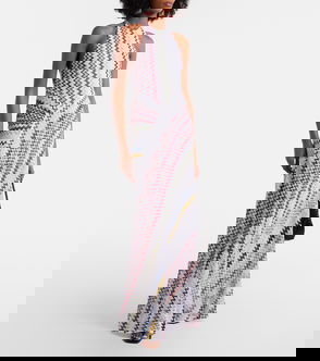 Fit & Flare Entangled Lace Print Maxi Dress Purple/Green