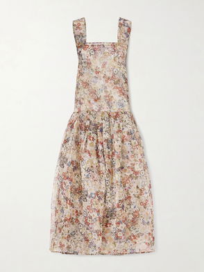 Clementina Ruffled Floral-Print Silk Crepe De Chine Midi Dress