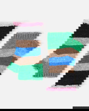 Green & Pink Striped Ribbed Knitted Fingerless Gloves