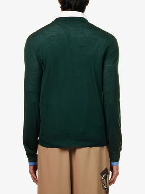 Merino Wool Crew Neck Jumper, Navy Teal Mouline