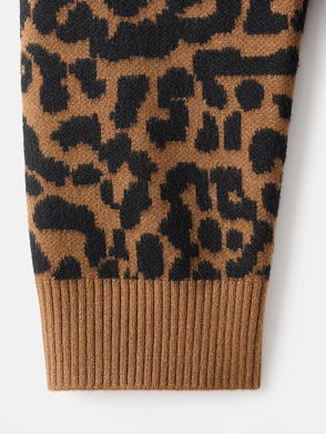 Fluffy Badge Cardigan In Leopard Print