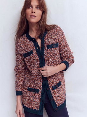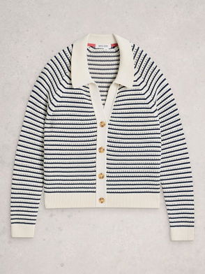 Chaterly Textured Stripe Cardigan, Ivory/Multi