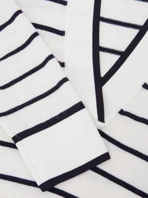 Merino Wool-Blend Collar Stripe Jumper With Cashmere In Ivory/Navy