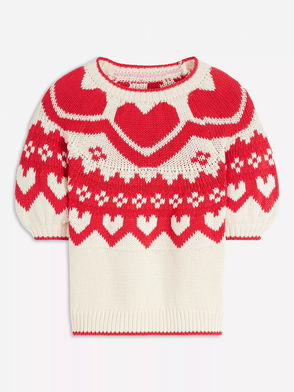 Margot Heart Puff Sleeve Jumper, Warm Ivory/Red