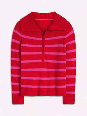 Lucy Stripe Half-Zip Jumper, Pink/Red