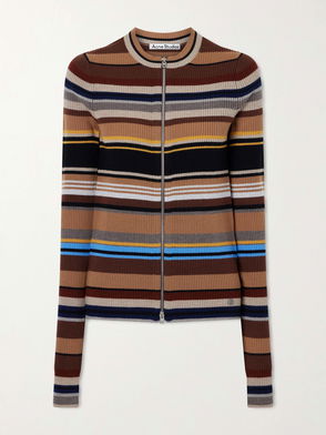 Alpaca And Merino Wool Blend Cropped Cardigan In Pink And Orange Stripe