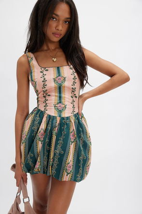 Megan Floral Print Gathered Cut Out Shirt Dress