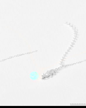Hilal Opalite Crescent Moon Charm Silver Pendant Necklace