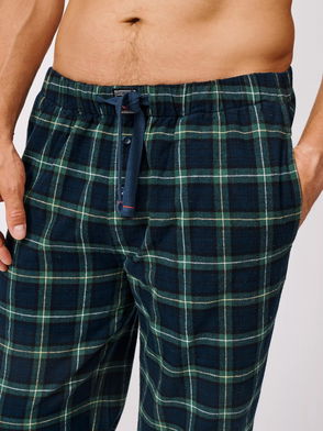 Edward Check Cotton Lounge Trousers, Green/Blue Check