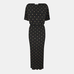 Lea Polka-Dot Floral-Print Silk-Jacquard Midi Dress
