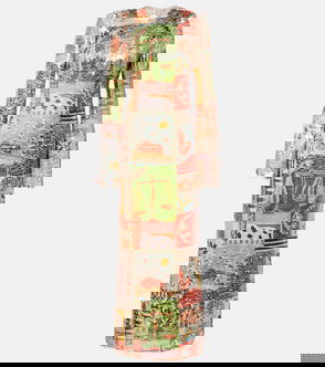 Printed Cut-Out Silk Midi Dress