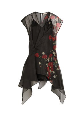 Pleated Floral-Print Organza Mini Dress