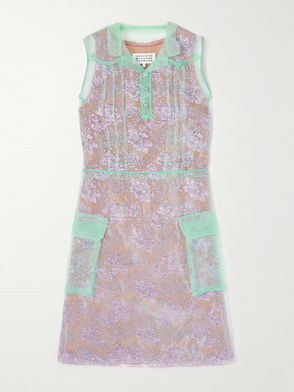 Strapless Cape-Effect Pleated Webbing-Trimmed Lace Midi Dress