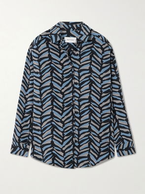 The Gillian Ruched Houndstooth Silk-Crepe Blouse