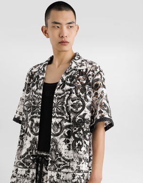 Majolica-print Hawaii Crochet Lace Shirt
