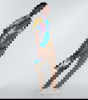 Men's Globe Print Cotton Short Sleeve Relaxed Fit Shirt