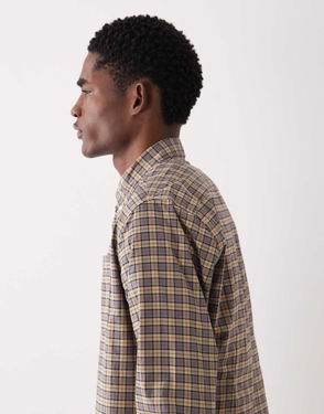 Brighton Cotton Long Sleeved Checked Shirt, Beige/Multi