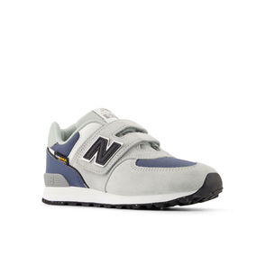 Kids 574 Hook & Loop In Grey/Blue Leather