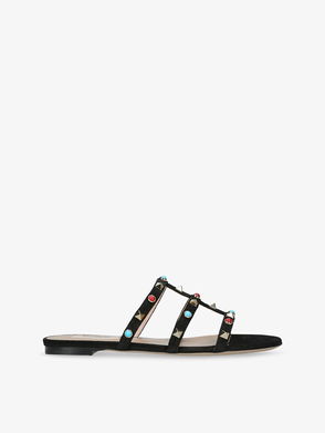 Rockstud Flat Leather Slides