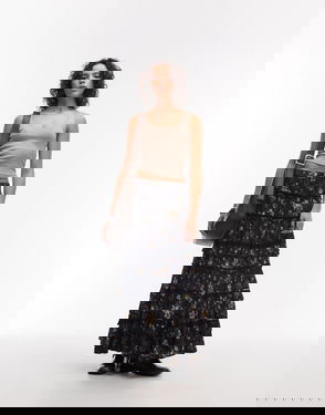 Talia Floral Tiered Maxi Skirt In Black