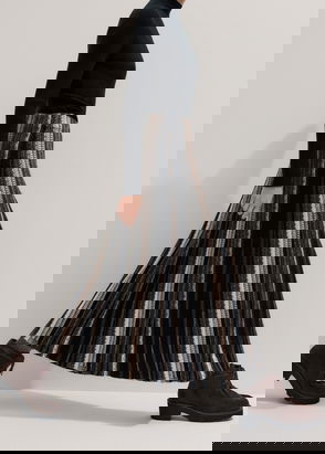 Metallic Textured Stripe Knit Maxi Skirt Gold Multi