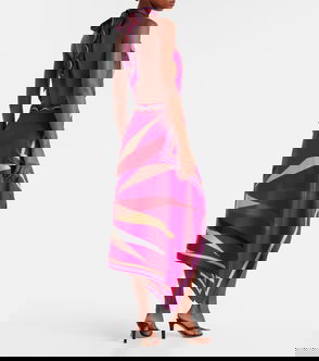 Endless Shimmer Striped Jersey Midi Skirt