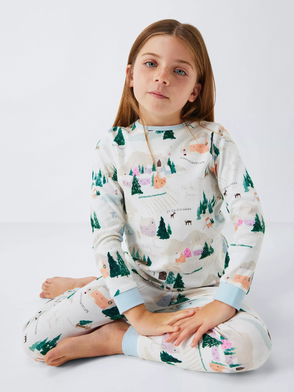 Kids' Cotton Long Sleeved Pyjama Set, Ivory/Multi