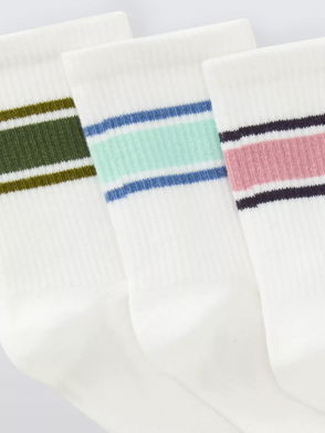Organic Cotton Striped Socks, Pack Of 3, Multi