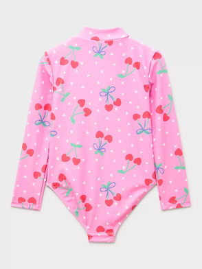 Kids' UPF50+ Cherry Zip-Up Long Sleeve Swimsuit, Pink/Multi