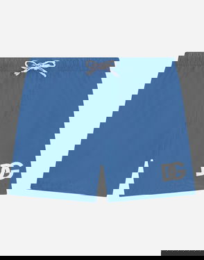 Medium Nylon Swim Shorts With Motorboat Print And Stripes