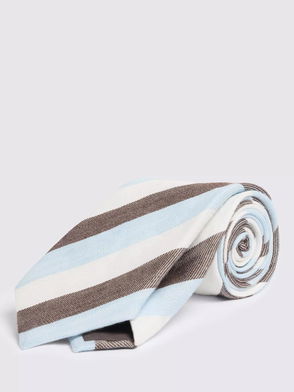 Italian Linen Silk Blend Stripe Tie, Light Blue/Brown