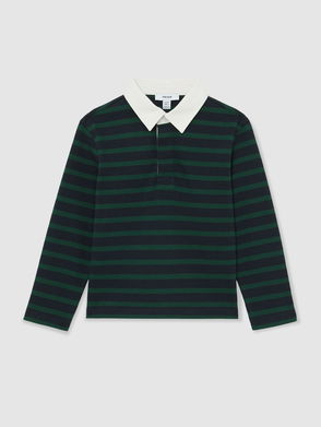 3-9 Yrs Cotton Rugby-Stripe Polo Shirt In Navy/Green