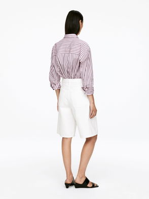 Logo-Print Striped Cropped Cotton Shirt