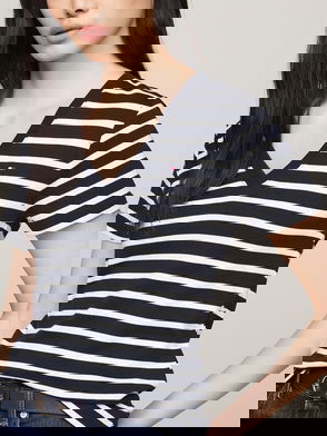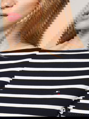 Boat Neck Slim T-Shirt Stripe