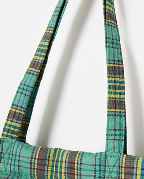 Mena Green & Brown Checked Logo Tote Shopper Bag