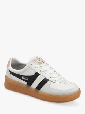 Grandslam Elite Leather Lace Up Trainers, White/Black/Pink