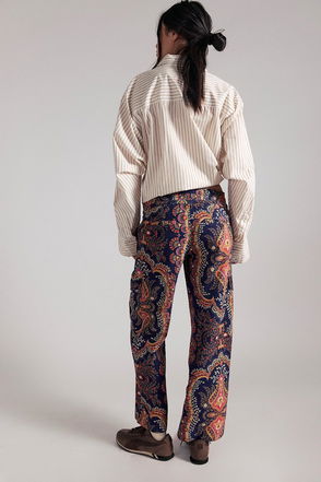 Side Stripe Flared Corduroy Trousers, Brown/Multi