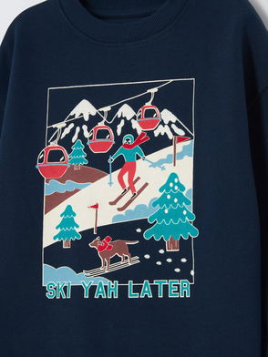 Kids' Christmas Ski Ya Later Graphic Jersey Top, Navy