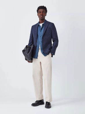 Single Breasted Regular Fit Textured Cotton Blend Blazer With Linen, Navy