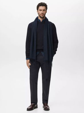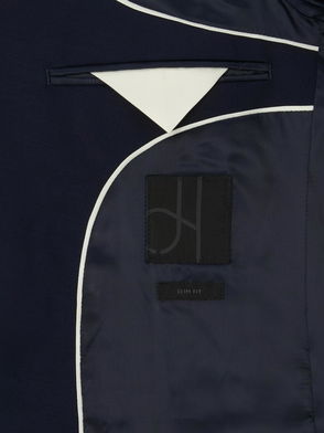Slim Fit Pure Wool Double Breasted Suit Jacket, Navy